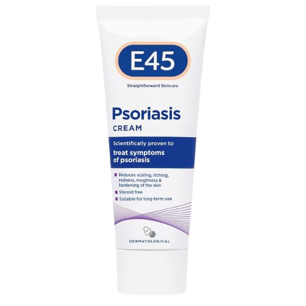 Krema za luskavico znamke E45 je hitro delujoč izdelek, formuliran s hranljivimi sestavinami, ki vlažijo kožo in pomagajo stabilizirati kožno pregrado.